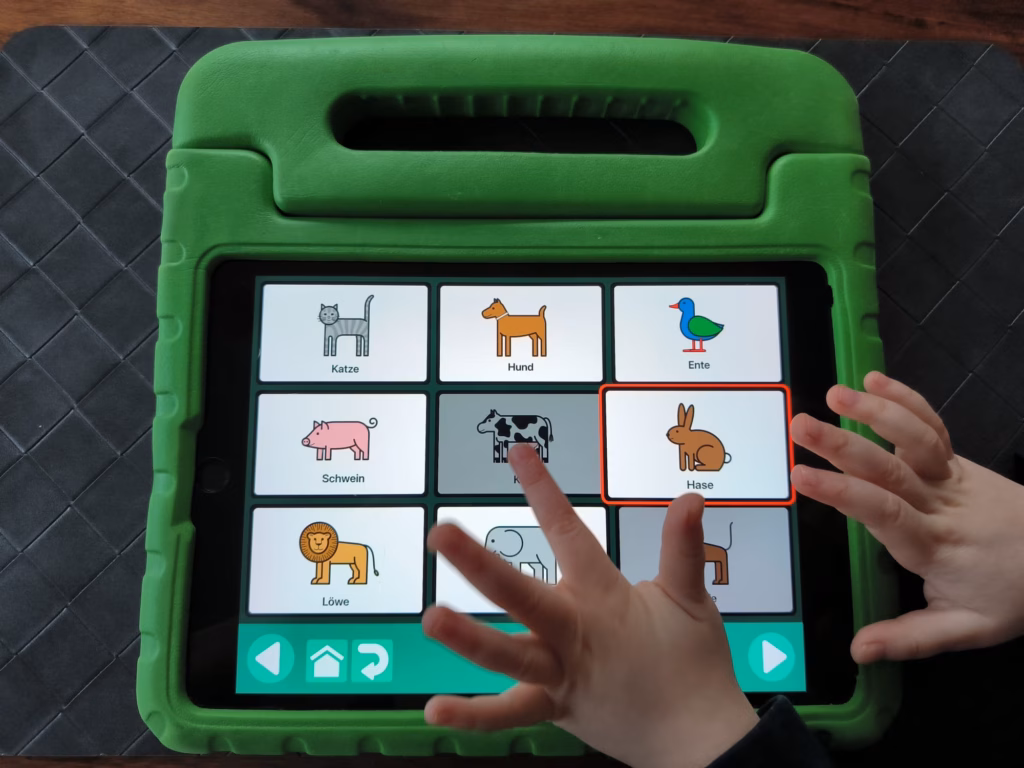 - Elektronische Möglichkeiten, wie z.B. Taster oder Talker. Taster sind die einfachste Art um zwischen zwei Möglichkeiten auszuwählen. Talker gibt es in ganz unterschiedlichen Ausführungen und sind sehr individuell bespielbar, von wenigen Symbolen über ganze Symbol-Paletten. Mit Sprachausgabe und ohne. Mit Steuerung durch die Hände, aber auch durch die Augen, falls eine schwere körperliche Behinderung vorliegt.