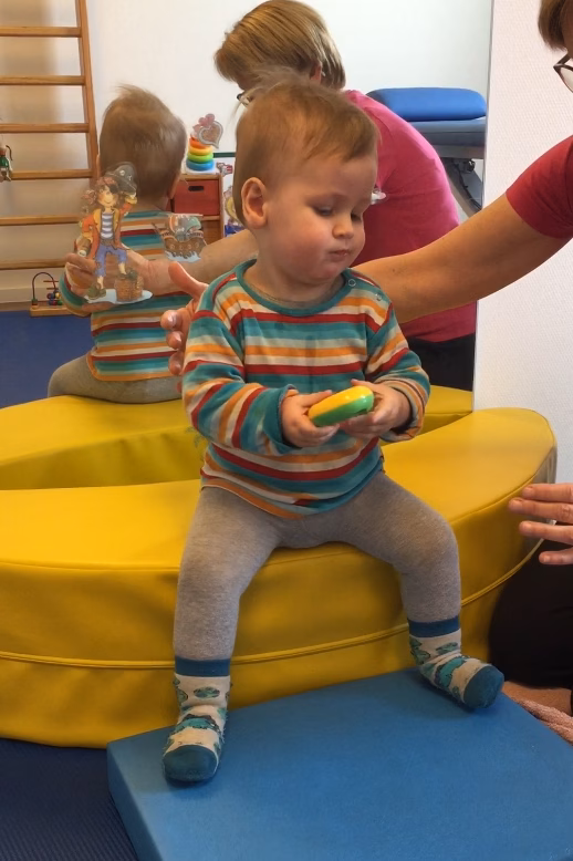 Physiotherapie ist besonders wichtig bei Hypotonie. Ziel ist es, den Körper stabiler zu machen, damit das Kind sich sicherer bewegen kann.
